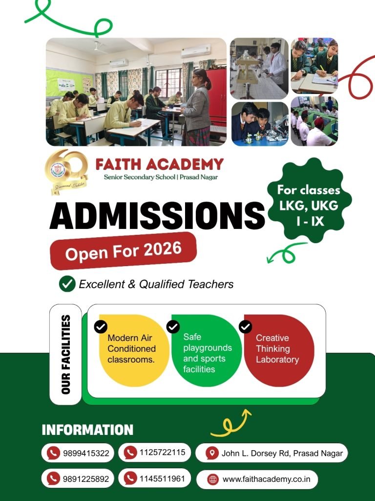 To begin a Christian School in East Patel Nagar became a vital matter of prayer from that day. The prayer like a rose bud has blossomed through the years and by the grace of God, continues to bloom for His glory. Faith Academy is a recognized, unaided, co-educational, Christian, minority school. It operates under the direction of the Christian Educational Society through the Managing Committee of Faith Academy. Being a Christian school, it seeks to encourage godliness, good character and responsible citizenship in every student. English is the medium of instruction.